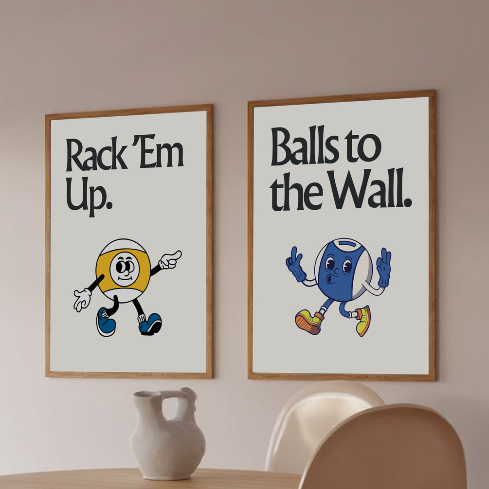 Designed in a bold, vintage style with illustrated pool balls full of character, these prints bring humor and energy to any space. Perfect for billiard lovers, game night hosts, or anyone who wants their walls to match the fun of the table.